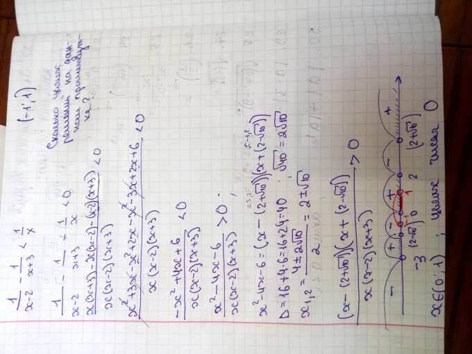 1/(x-2) - 1/(x+3) < 1/(х), верно? 3 дроби, знаменатели в скобках