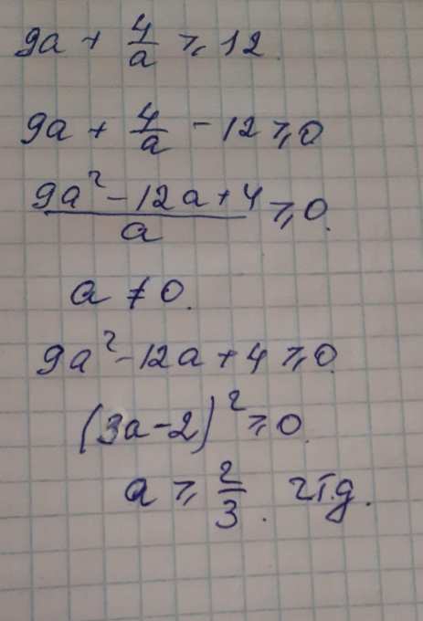 9a + 4/a - 12 >= 0