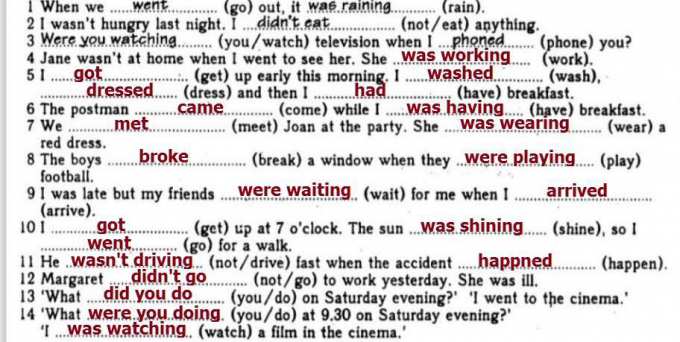 1. went was raining