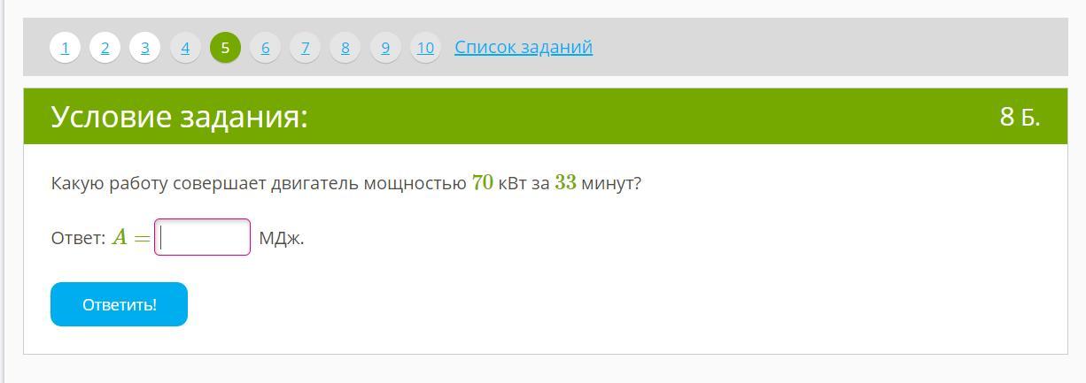 A=70 000 Вт*33*60 с=138600000 Дж=