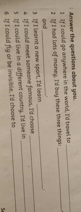 2. If I had lots of money, I'd buy these three things: a yaht, a helicopter and an island.