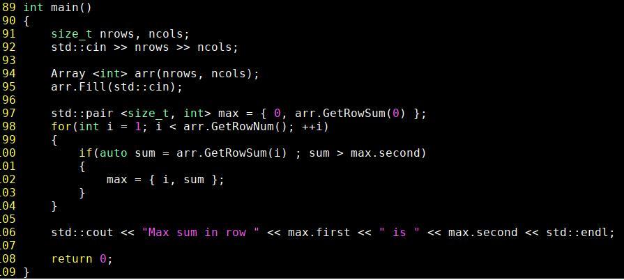 Требуется вывести индекс строки, сумма элементов которой максимальна. Выводить