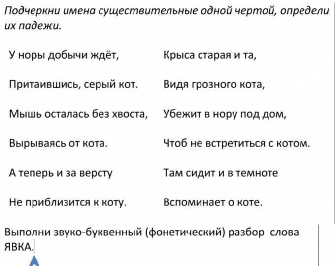кот - и.п. (в) нору - в.п.